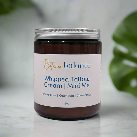 🌿 Whipped Tallow Mini Me Cream – Combining Kawakawa with nutrient-rich tallow to soothe inflamed or sensitive skin on your face.