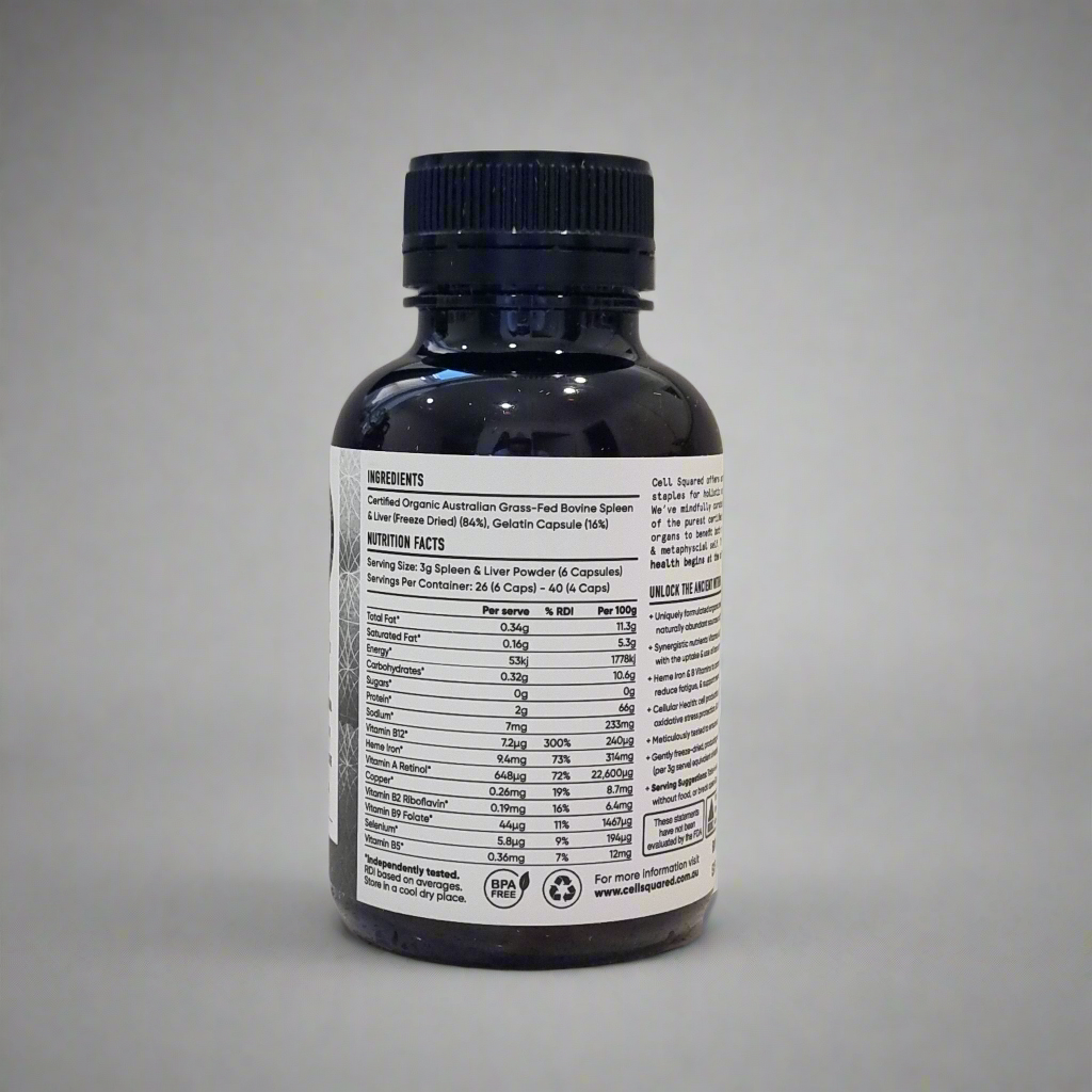 Organic Grass-Fed Beef Spleen & Liver Capsules – Nutrient-Dense Organ Support | Cell Squared